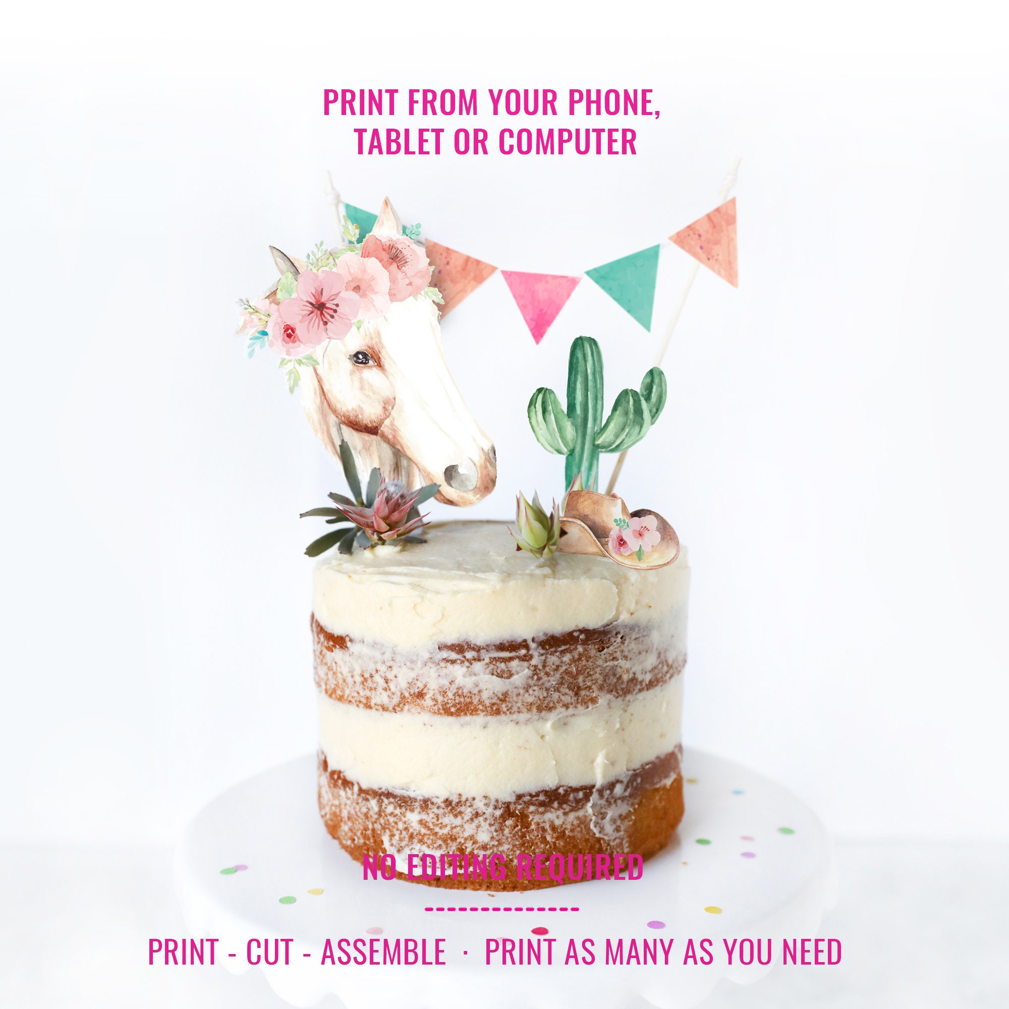 Cowgirl Party Birthday Cake Topper Cowgirl Watercolor Cake Topper Horse Party Topper Instant Download Etsy